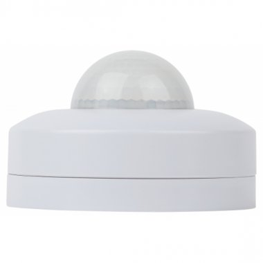 Главное преимущество данного потолочного датчика движения в максимально широком обзоре 360 градусов. Устройство активно применяется для автоматического регулирования работы осветительных приборов на территории дачных участков, в производственных помещениях, гаражах, на лестничных клетках в подъездах многоэтажных домов. Датчики движения можно с удобством применять и в жилых помещениях. Данное устройство фиксирует движение в сенсорной зоне (12 метров) и автоматически включает свет. Можно комфортно входить и перемещаться внутри помещений, не тратя время на поиски выключателя. Это особенно актуально, когда у пользователя заняты руки. Датчик движения обладает возможностью регулировки времени задержки выключения (от 10 секунд до 7 минут) и настройки чувствительности к внешнему освещению. Позволяет существенно экономить электроэнергию. Обладает повышенной мощностью 1200 Вт.