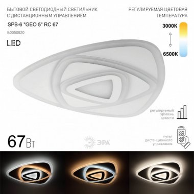 Светильник потолочный SPB-6 "GEO 5" мощностью на 67 Вт. Эта лампа станет современной альтернативой громоздким люстрам, позволит разнообразить интерьер за счет дизайна, а также сделает возможным выбор комфортной для Вас цветовой температуры без дополнительных затрат. В комплекте с люстрой идет пульт д/у, который станет Вашим главным помощником в регулировке изделия. Главная особенность LED светильника – возможность выбора цветовой температуры от 3400 до 5500К. Кроме того, он оснащен плавным переключателем яркости, который помогает глазам быстро приспособиться к свету в комнате. У светодиодной потолочной люстры также имеется «Ночной режим», который снижает яркость до минимального уровня. Потолочный светильник SPB-6 "GEO 5" – это возможность преобразить интерьер на кухне, в коридоре или в спальне, сэкономив пространство. Попробуйте практичное световое решение для своего дома – выберите стиль и удобство!