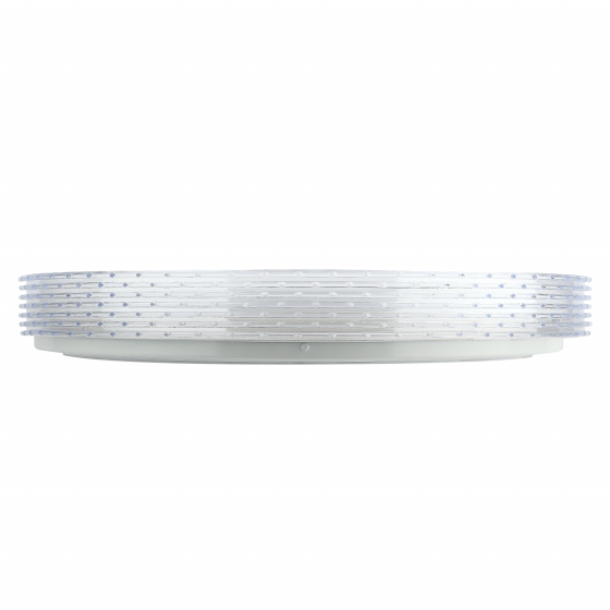 Светильник светодиодный потолочный ЭРА SPB-6-70-RC серии LIM отличается возможностью регулирования яркости светового потока и цветовой температуры. Пульт дистанционного управления имеет крупные кнопки с подсказками, очень удобен в использовании. Светильник можно расположить в уютной гостиной и менять яркость освещения в зависимости от настроения или необходимости. Цветовая температура регулируется в пределах от 3000 К до 6000 К. Диаметр корпуса составляет 51 см. Светодиодный светильник выполнен в классическом дизайне. На стальном корпусе располагается светодиодная плата, оснащенная современным и надежным драйвером. Матовый рассеиватель имеет декор, напоминающий звездное небо, он обрамлен прозрачным элементом «под хрусталь». Подобная конструкция выглядит особенно выразительно в темное время суток, создавая уютную атмосферу с эффектным свечением вокруг корпуса лампы.