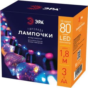Гирлянда праздничная светодиодная на батарейках ЕGNIG-80M от бренда ЭРА Лампочки 1.8 м от бренда ЭРА создаст атмосферу уюта в Вашем доме к Новому году и Рождеству! Гирлянда нить украсит стену, окно или елку. Данная модель состоит из 80 светодиодов с разноцветным светом (мультиколор), лампочки выполнены в форме луковиц (материал ПВХ). Электрогирлянда имеет незаметный прозрачный провод, класс защиты IP20 (использование внутри помещений), питание от 3 батареек АА. Гирлянда LED ЭРА прослужит Вам долго, станет универсальным украшением гостиной, кухни, спальни или другого пространства, а еще это прекрасный подарок для близких! Новогодний декор для дома подарит чудесное праздничное настроение!