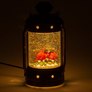Новогодний светодиодный светильник ENGDS-12 Красный кардинал высотой 18 см от бренда ЭРА создаст у Вас дома праздничную атмосферу! Светильник-фонарик выполнен из ПВХ и окрашен под медь, внутри стекла расположены блестки, создающие эффект падающего снега. Внутри фонаря находятся фигурки двух красных кардиналов, они подсвечиваются 1 светодиодной лампочкой сверху. Декоративный светильник работает от 3 батареек АА, степень защиты IP20 (рекомендуется использовать в помещениях), автоматическое отключение через 6 часов. Он станет прекрасным украшением кухни, гостиной, а еще его можно использовать в спальне как ночник. Настольный винтажный фонарь - это необычный подарок на Новый год или Рождество, который понравится взрослым и детям. Новогодний декор для дома всегда поднимает настроение!