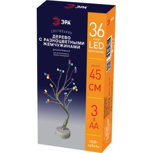 Количество ламп: 36 LED Цвет свечения: мультиколор Размер композиции: высота 45 cм Влагостойкость: IP 20 Источник питания: USB - кабель в комплекте, 3 х АА (в комплект не входит)
