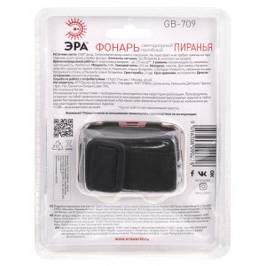 ЭРА GB-709 "Пиранья" – компактный и легкий налобный фонарь с 3 режимами работы. Оснащен COB матрицей, которая создает свет дальностью– 20 метров. LED-элемент не перегорает и не требует замены в течение всего срока эксплуатации. Прочный корпус защищен от механических воздействий. Для работы устройства требуются три мизинчиковые батарейки, которых хватает на 2,5 часа свечения при непрерывной работе фонаря. В зависимости от ситуации использования можно выбирать любой из трех доступных режимов – свет повышенной яркости, освещение средней яркости, стробирование.