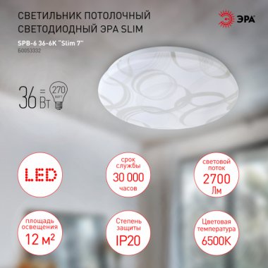 Светильник потолочный светодиодный ЭРА Slim без ДУ SPB-6 Slim 7 36-6K 36Вт 6500K