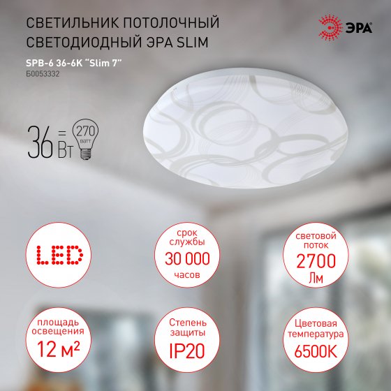 Купить по низким ценам ЭРА Slim без ДУ SPB-6 Slim 7 36-6K 36Вт 6500KОписание ЭРА Slim без ДУ SPB-6 Slim 7 36-6K 36Вт 6500K