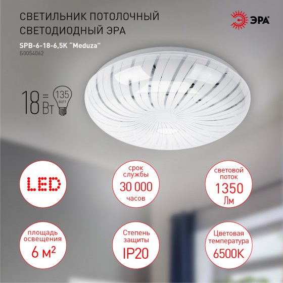 Купить по низким ценам ЭРА SPB-6-18-6,5K Meduza без ДУ 18Вт 6500KОписание ЭРА SPB-6-18-6,5K Meduza без ДУ 18Вт 6500K