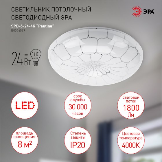 Купить по низким ценам ЭРА SPB-6-24-4K Pautina без ДУ 24Вт 4000KОписание ЭРА SPB-6-24-4K Pautina без ДУ 24Вт 4000K