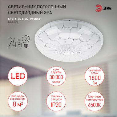 Купить по низким ценам Эра Светильник потолочный светодиодный ЭРА SPB-6-24-6,5K Pautina без ДУ 24Вт 6500K Б0054070Описание Эра Светильник потолочный светодиодный ЭРА SPB-6-24-6,5K Pautina без ДУ 24Вт 6500K Б0054070