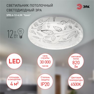 Эра Светильник потолочный светодиодный ЭРА Классик без ДУ SPB-6-12-6,5K Syuzi 12Вт 6500K Б0054072